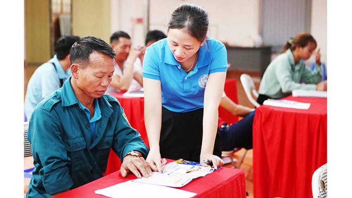 Nhân viên BHXH hướng dẫn người dân tham gia BHXH tự nguyện