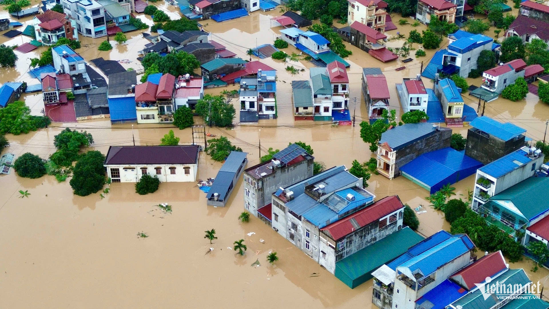 Các tuyến phố tại tỉnh Thái Nguyên gần như biến thành sông, nhiều ngôi nhà bị ngập quá tầng một.