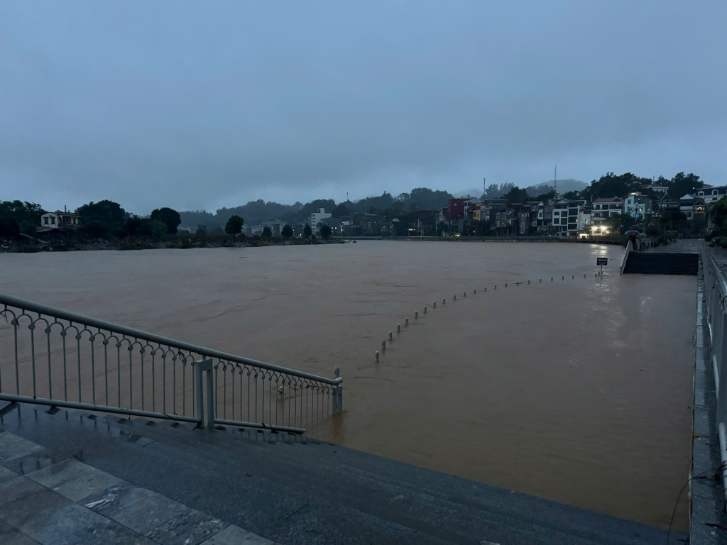 Mực nước sông Bằng Giang dâng cao.
