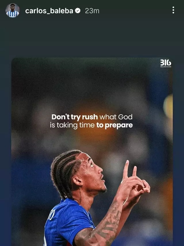 Tuy nhiên, chính bài đăng mới nhất của Baleba lại khiến một bộ phận CĐV MU quay lưng. Tiền vệ 21 tuổi chia sẻ hình ảnh của Joao Pedro (Chelsea) kèm câu nói triết lý: "Đừng cố thúc đẩy điều mà Chúa đang dành thời gian để chuẩn bị". Động thái lập tức bị diễn giải theo nhiều hướng.