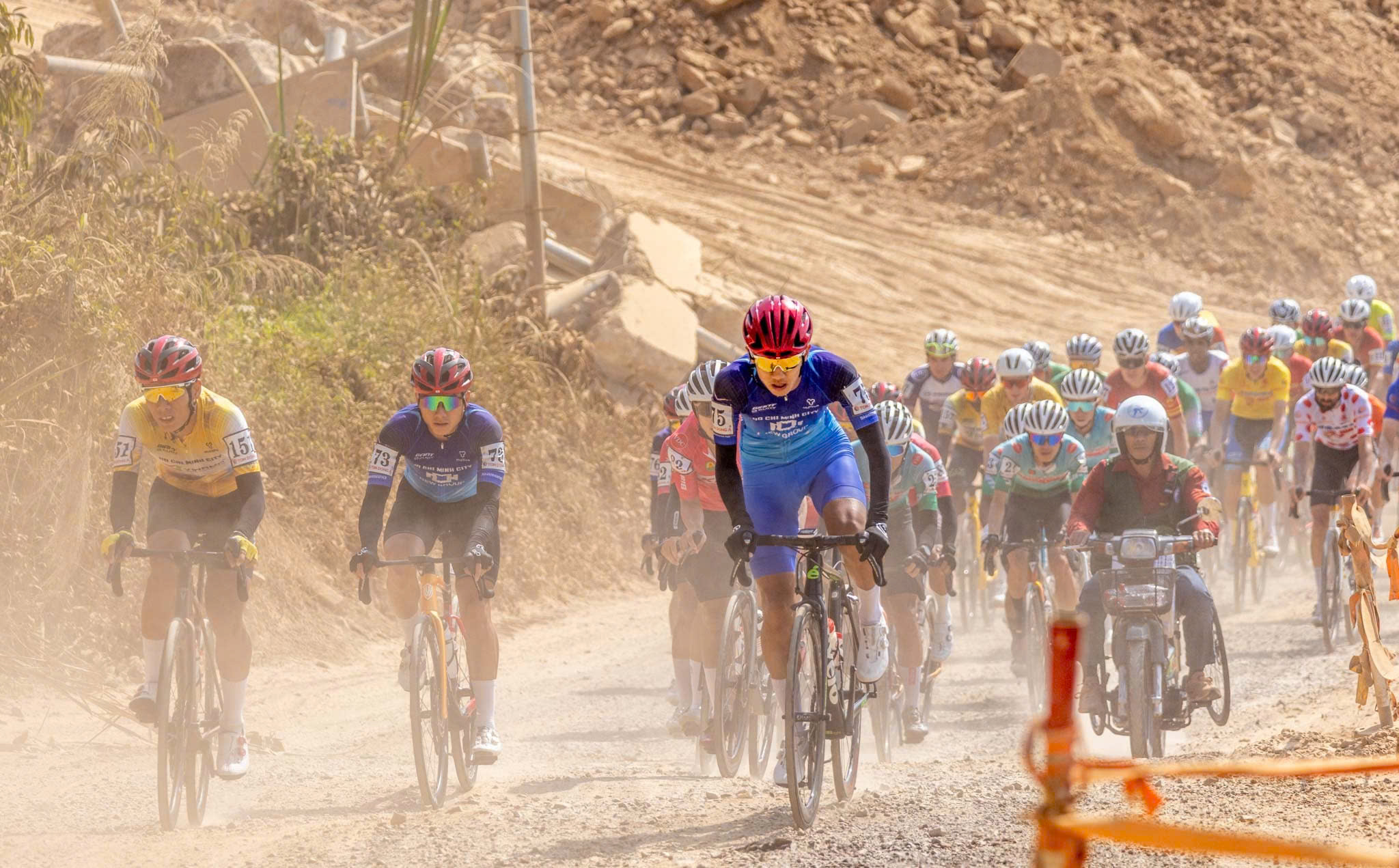 Địa hình leo dốc kéo dài, cộng với nhịp độ thi đấu khắc nghiệt, đã xé nhỏ đoàn đua thành hàng chục tốp, biến chặng đấu thành cuộc sàng lọc khốc liệt nhất từ đầu giải.