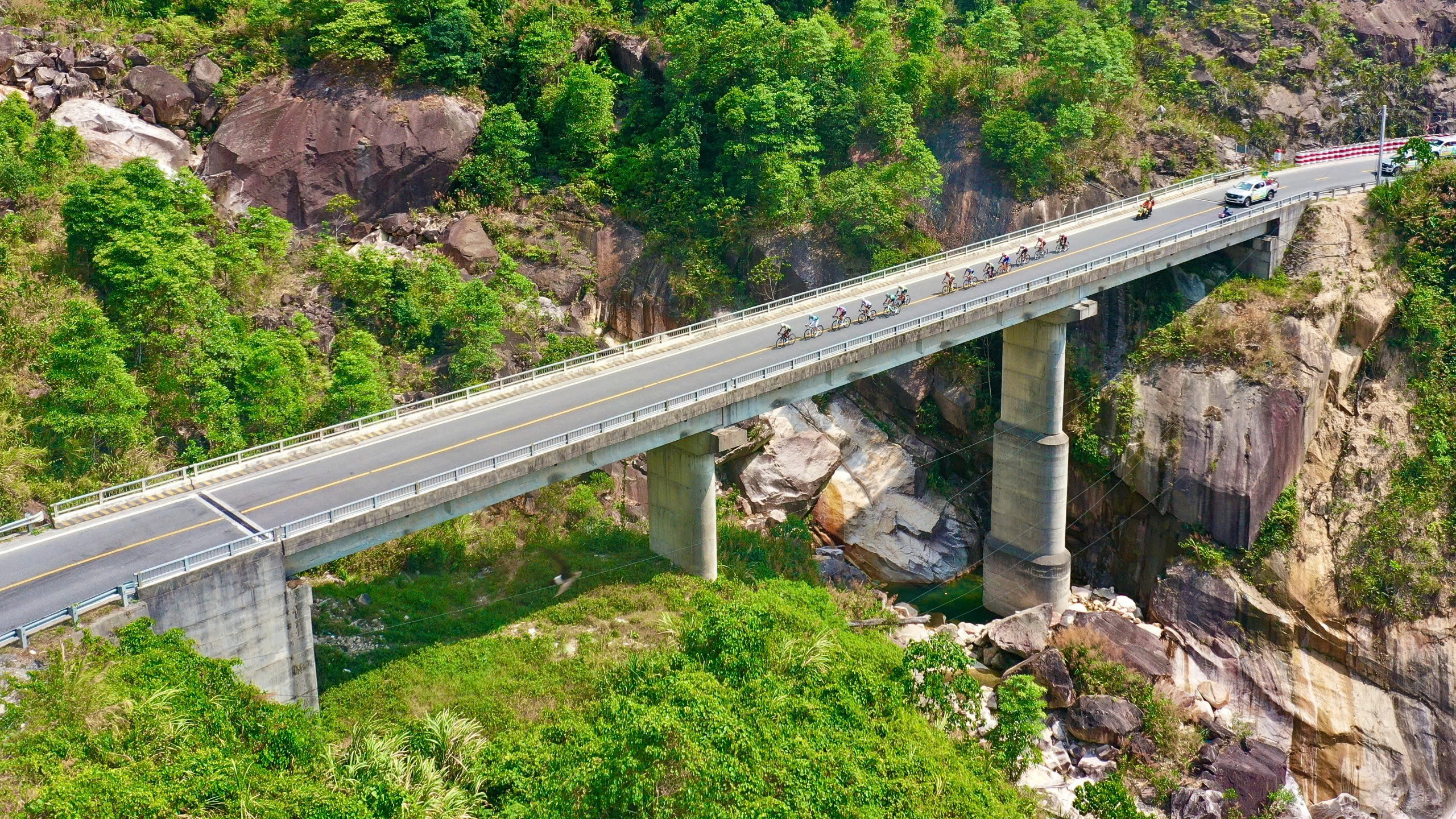 Đoàn đua vào chân đèo Khánh Lê.