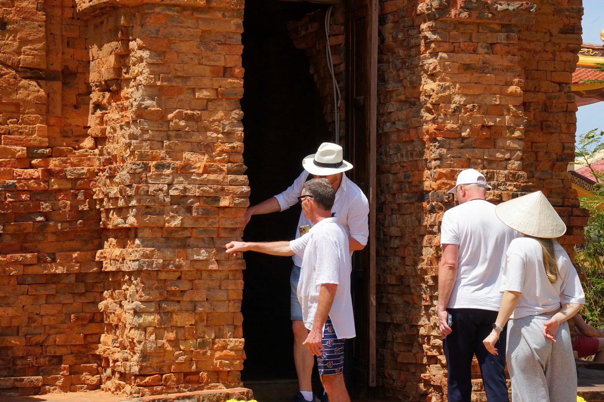 Du khách quốc tế tham quan, khám phá vẻ đẹp kiến trúc tại Nhóm đền tháp Pôsah Inư (phường Phú Thủy, tỉnh Lâm Đồng)