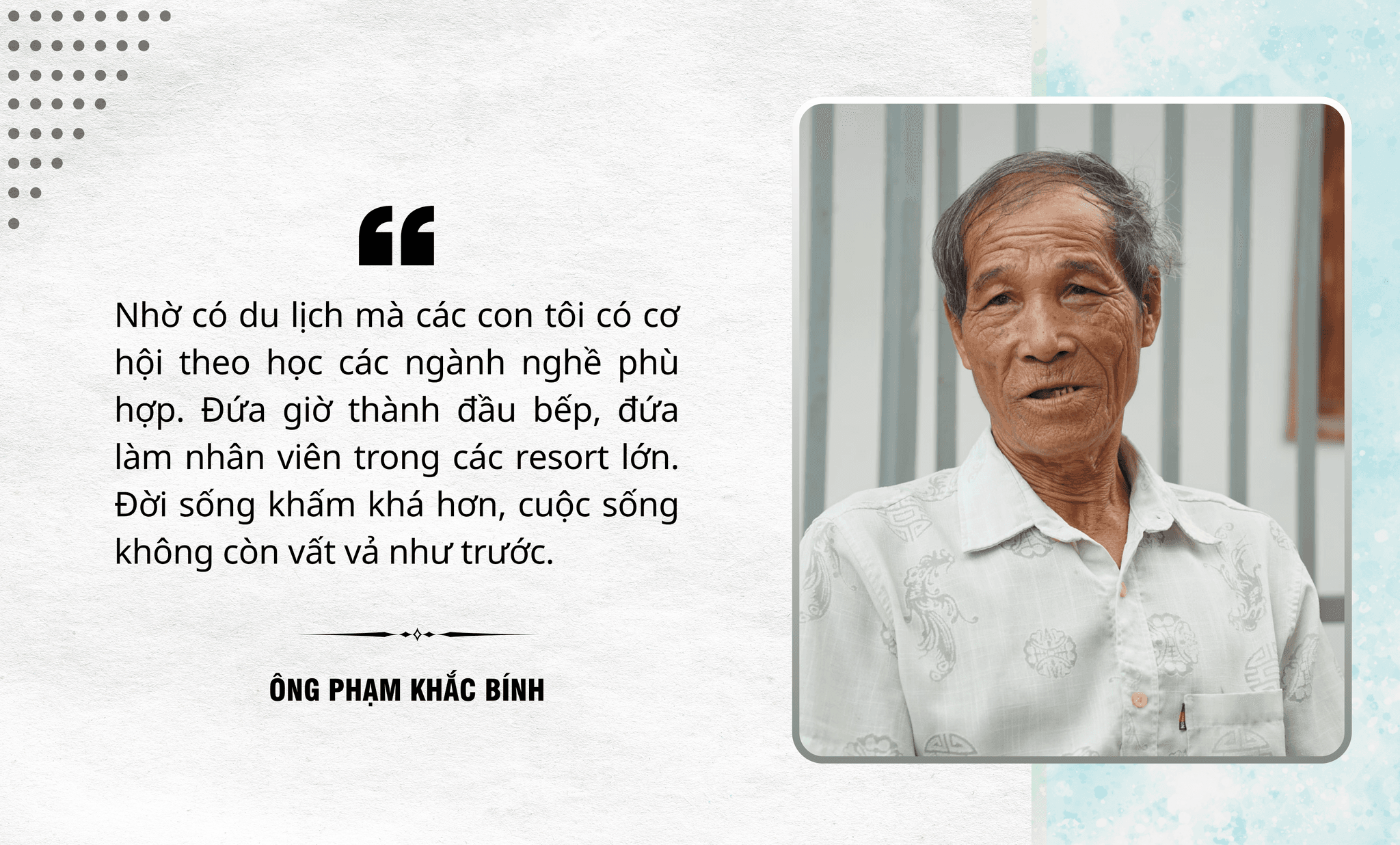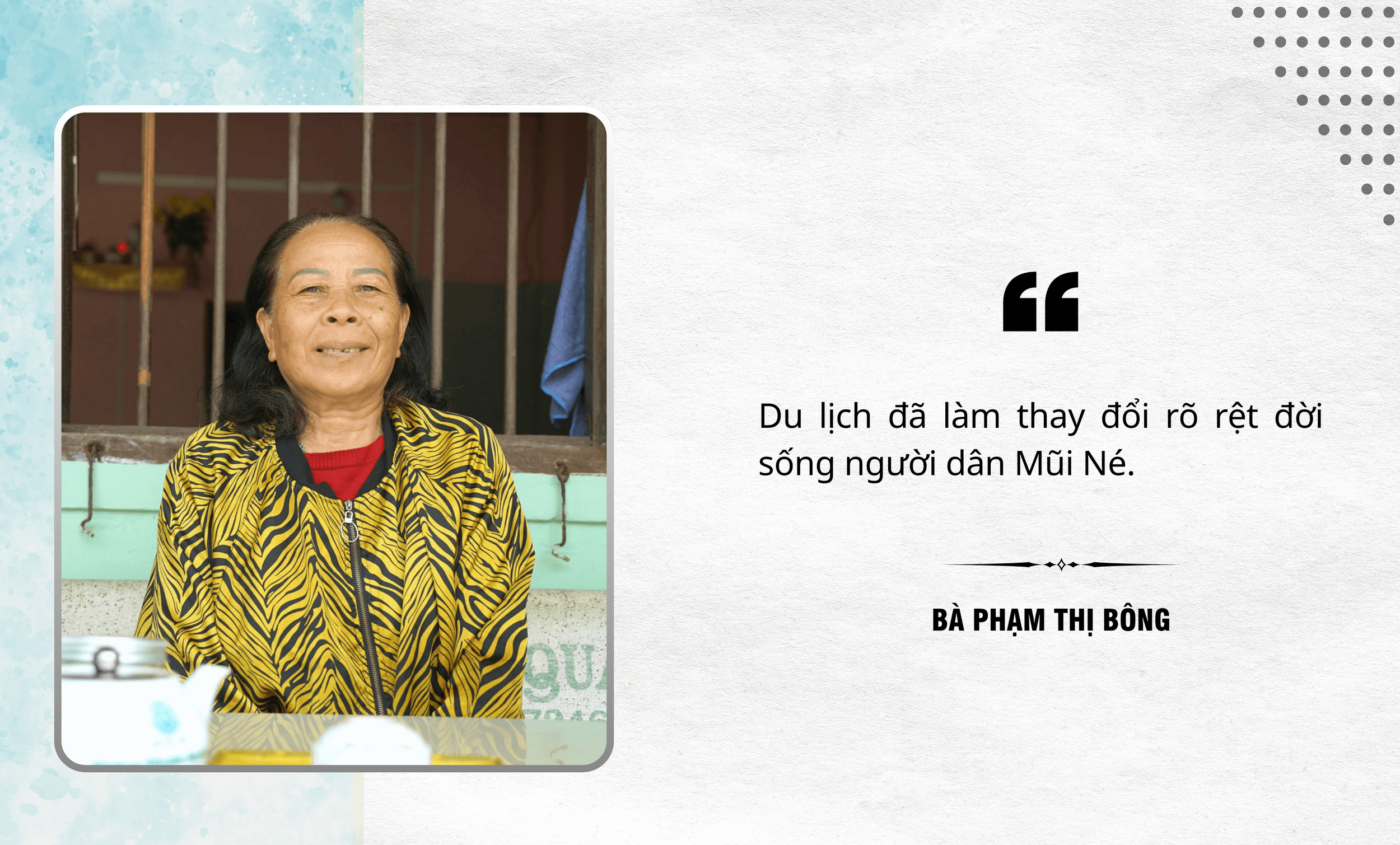 Bà Phạm Thị Bông (khu phố 4, phường Mũi Né) chia sẻ: “Du lịch phát triển, nhiều công trình được đầu tư nên nghề xây dựng của gia đình cũng có thêm nhiều việc. Tôi buôn bán, học thêm ngoại ngữ để giao tiếp với du khách. Kinh tế ổn định, khấm khá hơn, con cái cũng chăm học để bắt kịp xu hướng”.