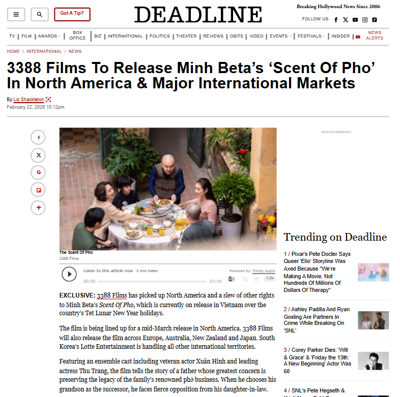 Việc phát hành quốc tế tạo thêm sức sống mạnh mẽ cho dòng phim văn hóa. Sự đón nhận từ công chúng trong và ngoài nước chính là nguồn lực để những câu chuyện bản sắc được lan tỏa một cách tự nhiên và trọn vẹn hơn. Khi đó, những bộ phim như “Mùi Phở” sẽ góp phần phản ánh diện mạo văn hóa Việt Nam đương đại.
