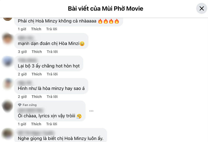 Ngay dưới bài đăng, nhiều bình luận cho rằng giọng ca nữ trong ca khúc "nghe quen", "dễ nhận ra". Đáng chú ý, không ít ý kiến từ cộng đồng mạng đã gọi tên Hòa Minzy, cho rằng chất giọng và cách xử lý ca từ có nhiều nét tương đồng. Một số khán giả chia sẻ chỉ cần nghe qua đã "nghĩ ngay đến Hòa Minzy", trong khi những người khác bày tỏ sự tò mò và chờ đợi xác nhận chính thức từ ê kíp.