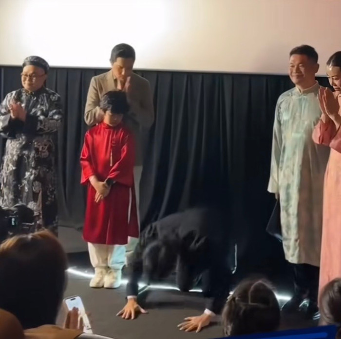 Giám đốc Lotte Việt Nam chân thành quỳ gối cảm ơn khán giả tại rạp (Ảnh: NSX).