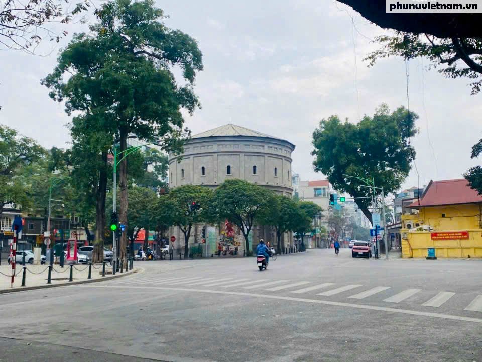 Tại nút giao tháp nước Hàng Đậu, luồng giao thông từ các hướng phố cổ, Long Biên và trung tâm đổ về nay chỉ lác đác vài xe qua lại, trả lại không gian tĩnh mịch cho công trình mang dấu ấn thời gian.