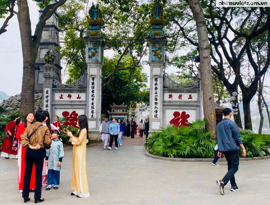 Tại khu vực Hồ Gươm, người dân thảnh thơi đi lễ đền Ngọc Sơn. Dù là điểm đến tâm linh đông đúc nhưng giao thông quanh khu vực vào buổi trưa vẫn rất trật tự, đường sá thông thoáng.