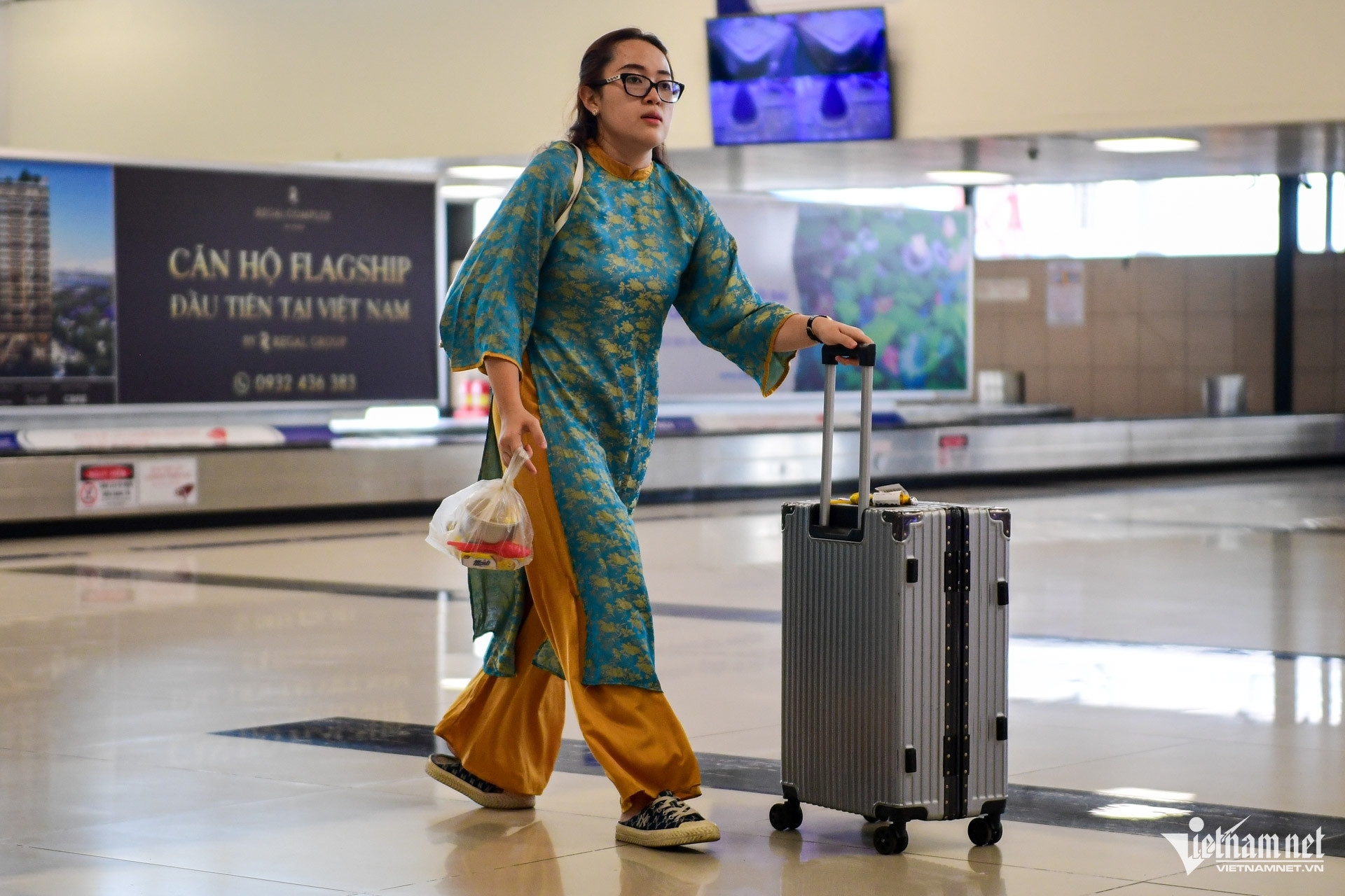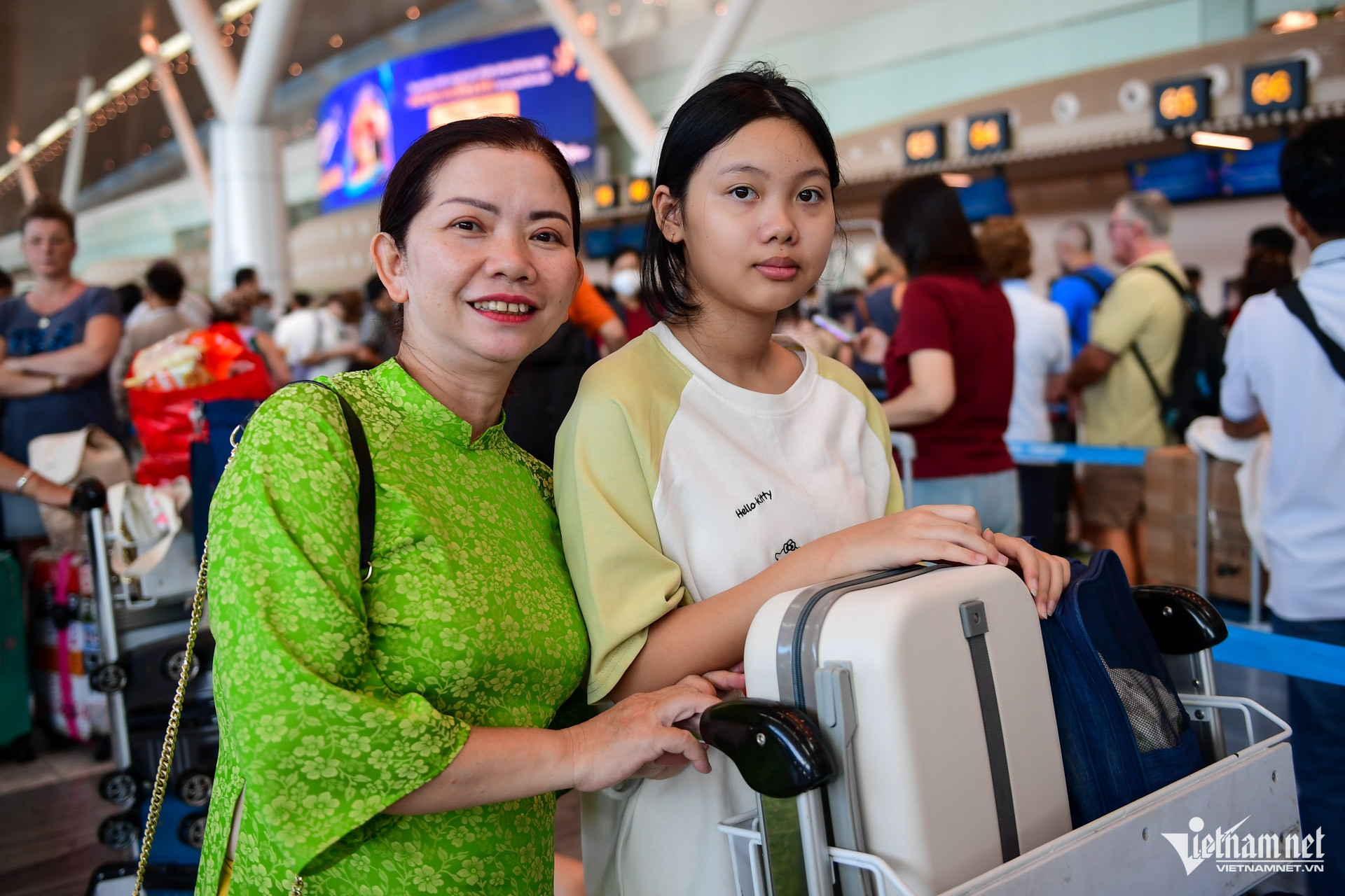 Không ít hành khách diện áo dài truyền thống. Chị Trần Thị Nga cho biết năm nào cũng bay về Quảng Ngãi vào mùng 1 Tết.