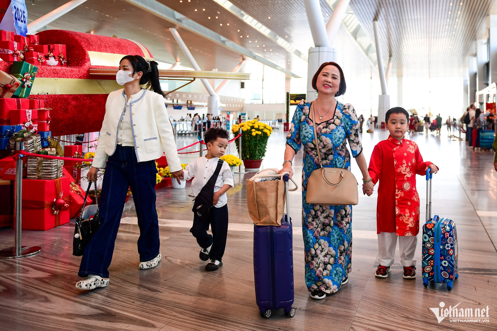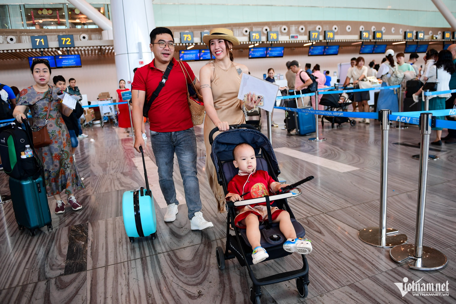 Trong khi đó, gia đình chị Thu Hà chọn đón năm mới bằng chuyến du lịch đến Phú Quốc, đúng dịp sinh nhật tròn 1 tuổi của con. “Sáng nay làm lễ đầu năm xong, cả nhà ra sân bay luôn. Tết năm nay chúng tôi làm đơn giản để dành thời gian cho con”, chị Hà vui vẻ chia sẻ.