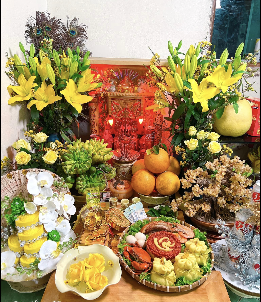 Mâm cúng thường được đặt tại bàn thờ thần Tài – ông Địa ở vị trí sạch sẽ, trang trọng trong nhà hoặc tại cửa hàng kinh doanh.