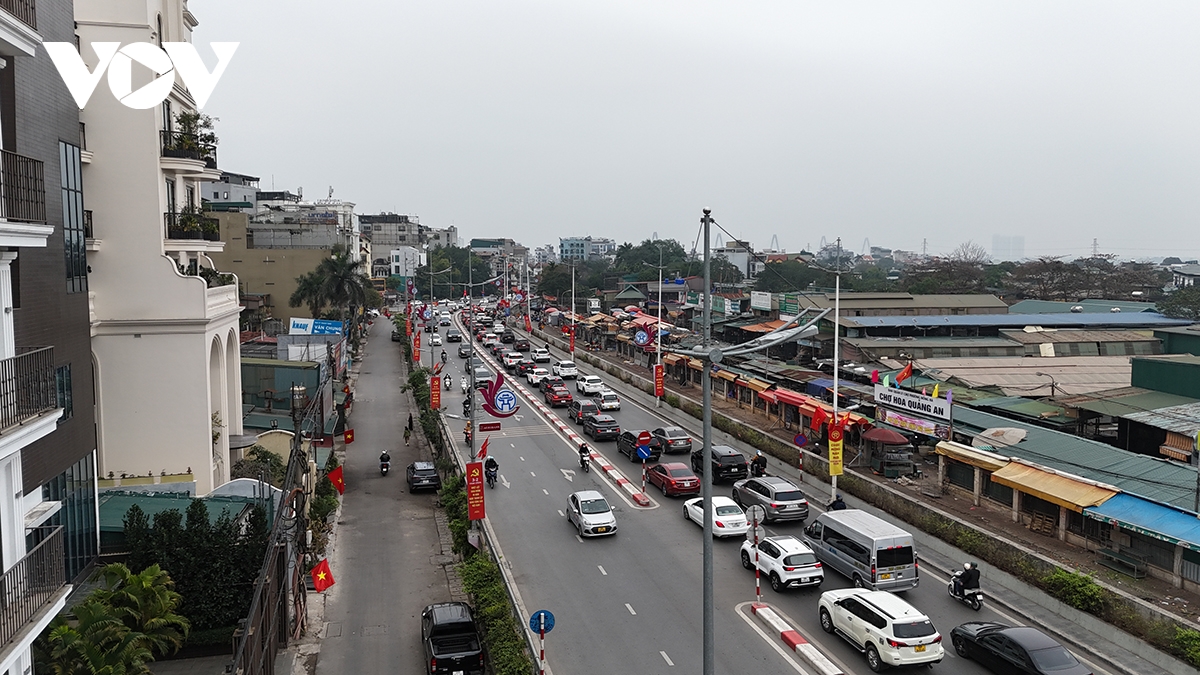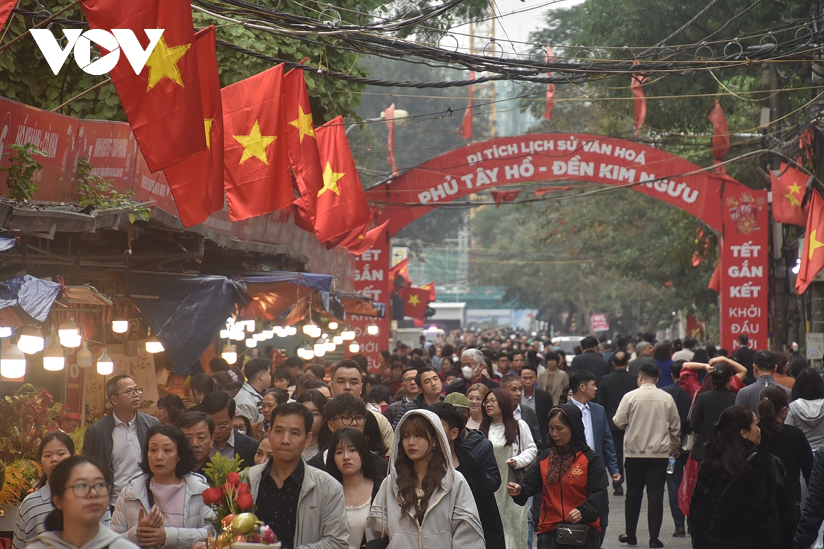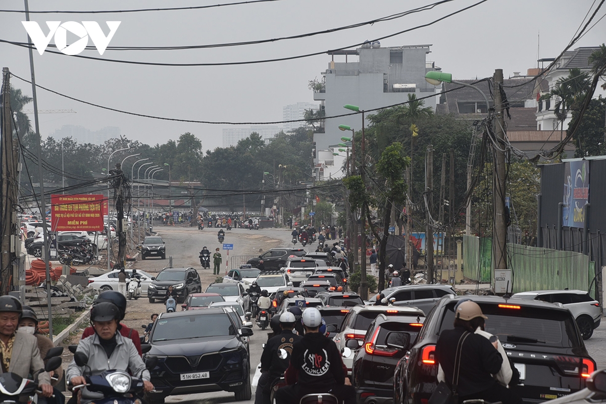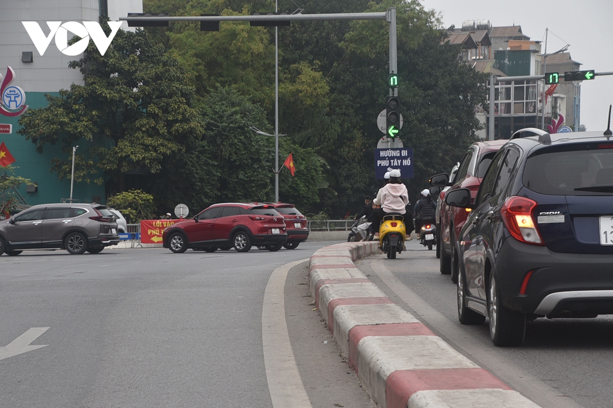 Lượng người và phương tiện tăng đột biến khiến khu vực Phủ Tây Hồ luôn trong tình trạng đông đúc trong ngày đầu Xuân.