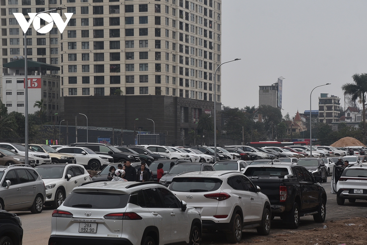 Bãi xe ô tô miễn phí phục vụ người dân đi lễ Phủ Tây Hồ đầu năm.