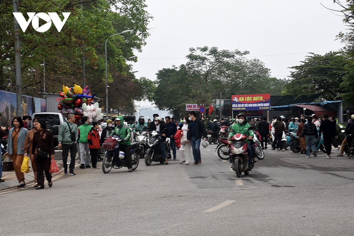 Lượng người và phương tiện tăng đột biến khiến các tuyến đường dẫn vào khu vực phủ rơi vào tình trạng đông đúc.