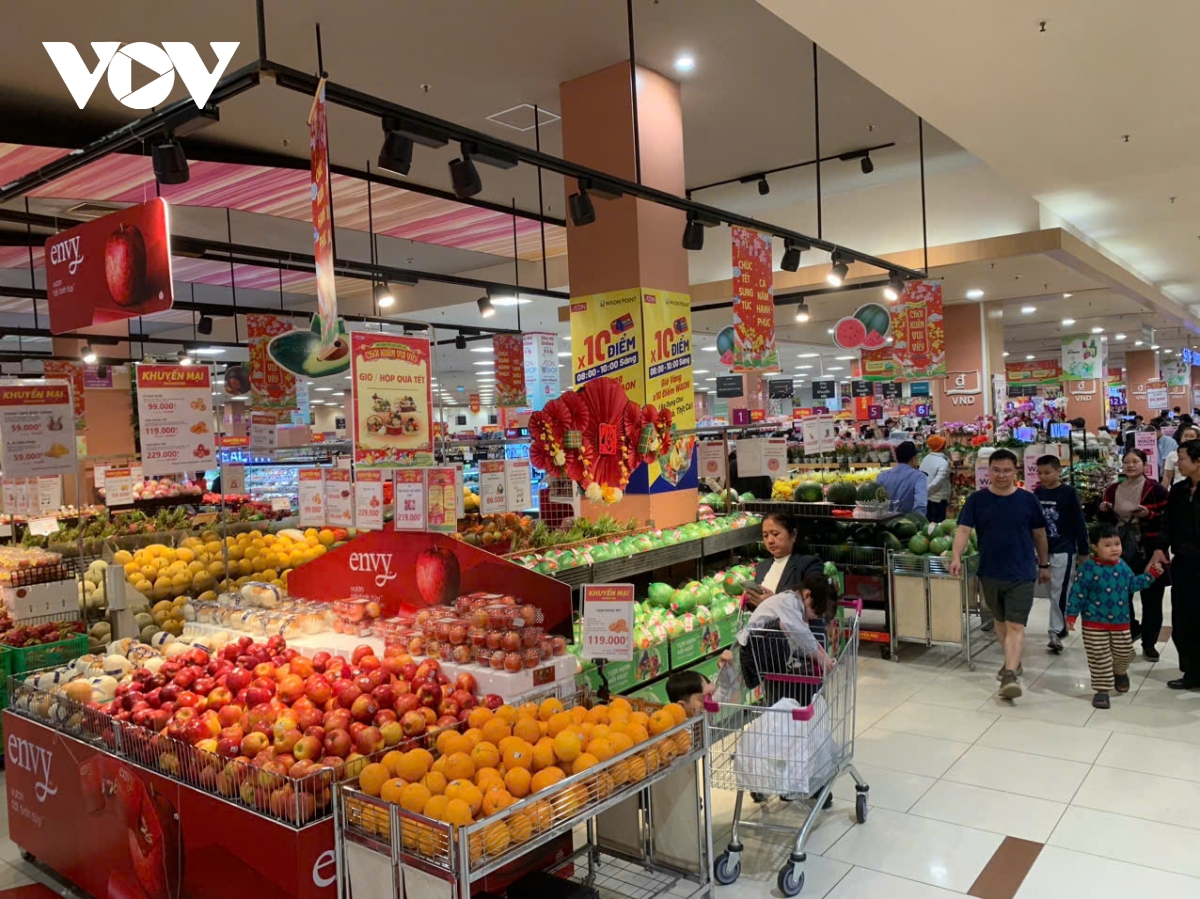 Ngày mùng 3 Tết, nhiều siêu thị, trung tâm thương mại lớn như Saigon Co.op, Central Retail, MM Mega Market, Lotte Mart, AEON, WinMart, GO! và AEON Mall đã đồng loạt mở cửa khai xuân. Các đơn vị duy trì nguồn cung dồi dào, đồng thời triển khai nhiều chương trình khuyến mại đầu năm nhằm kích cầu tiêu dùng. Tại kênh bán lẻ hiện đại, giá hàng hóa được niêm yết ổn định, nhiều mặt hàng thiết yếu tiếp tục được giảm giá từ 5 - 20%. Nhóm thực phẩm tươi sống, thực phẩm chế biến, bánh mứt kẹo, đồ uống và hàng tiêu dùng nhanh vẫn chiếm tỷ trọng lớn trong cơ cấu tiêu thụ.
