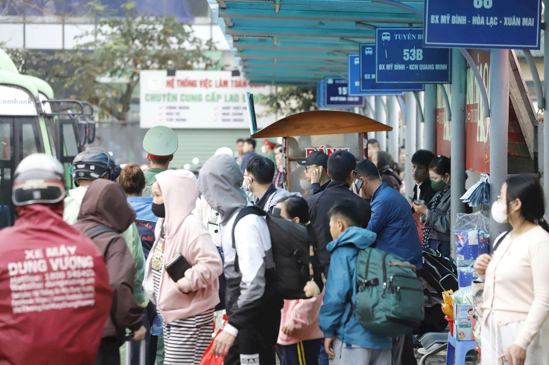 Bến xe Mỹ Đình kín khách trong chiều mùng 6 Tết. Ảnh: Tuấn Khải