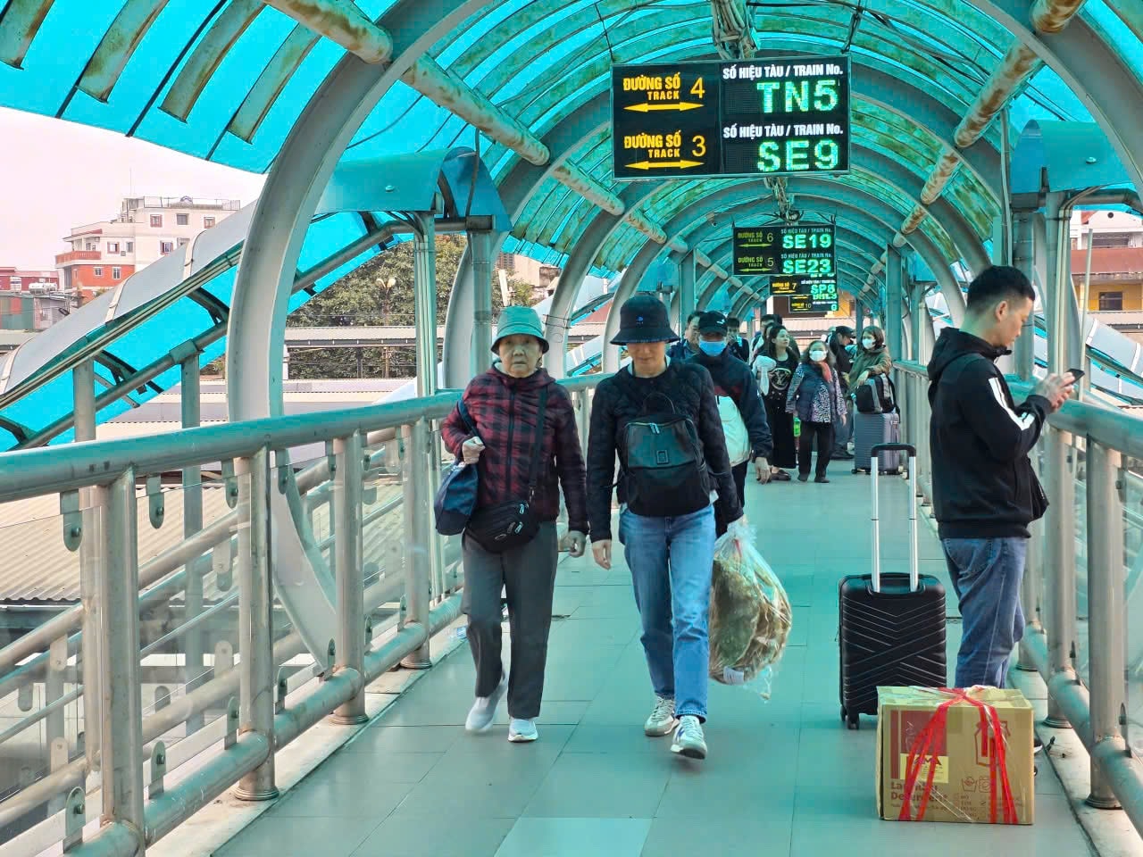 Ngay từ sáng mùng 6 Tết, các đoàn tàu từ phía Nam, từ thành phố Hải Phòng, tỉnh Lào Cai nối nhau về ga Hà Nội, đưa hàng chục nghìn người từ các tỉnh trở về Thủ đô. Các đoàn tàu đều đông kín khách. Ga Hà Nội nhộn nhịp từ trong sân ga cho đến khu vực quảng trường phía trước ga.