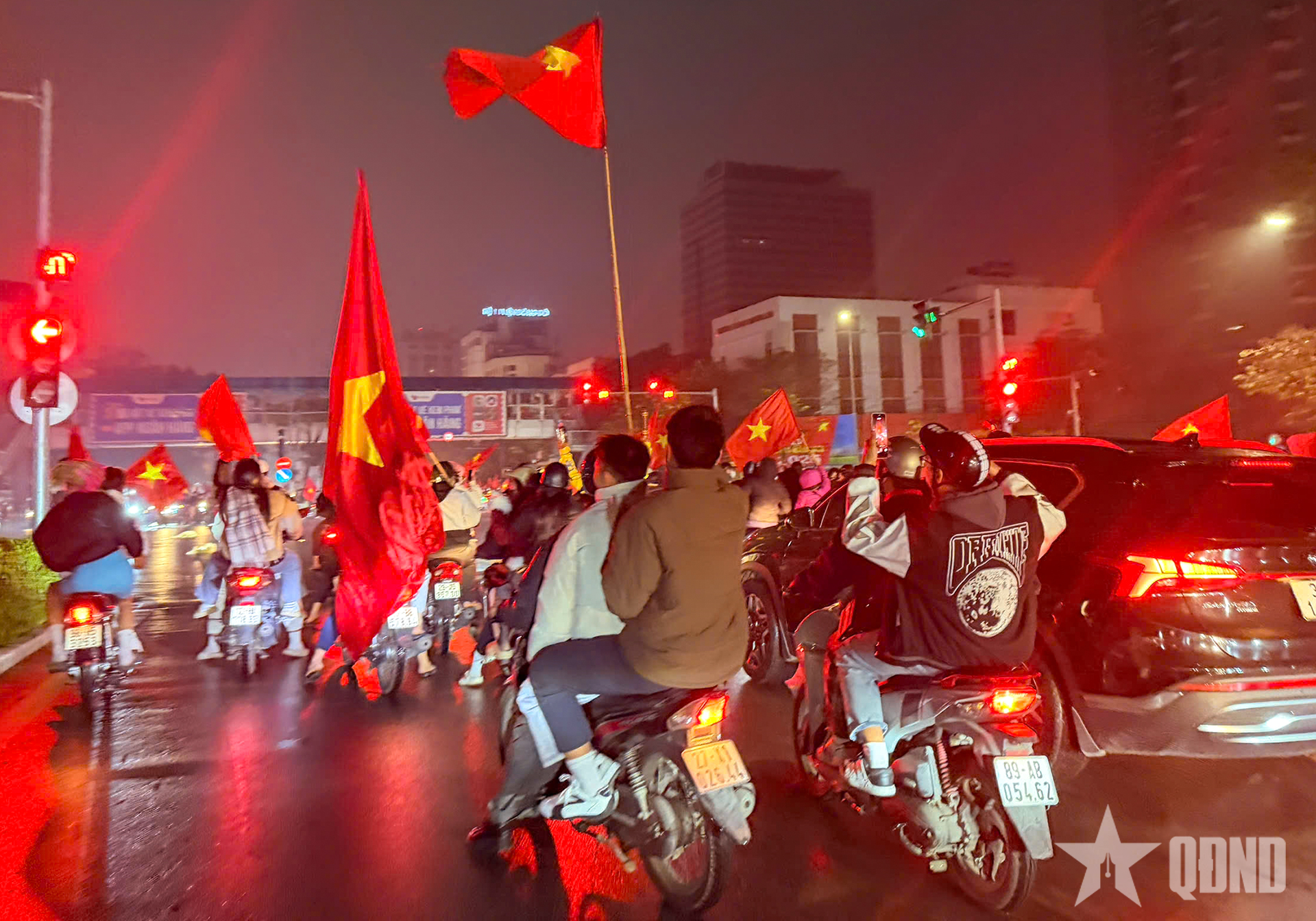 Trên các tuyến phố, sắc cờ Tổ quốc, áo đội tuyển cùng những tiếng hò reo không chỉ thể hiện tình yêu bóng đá mà còn là niềm tự hào dân tộc.