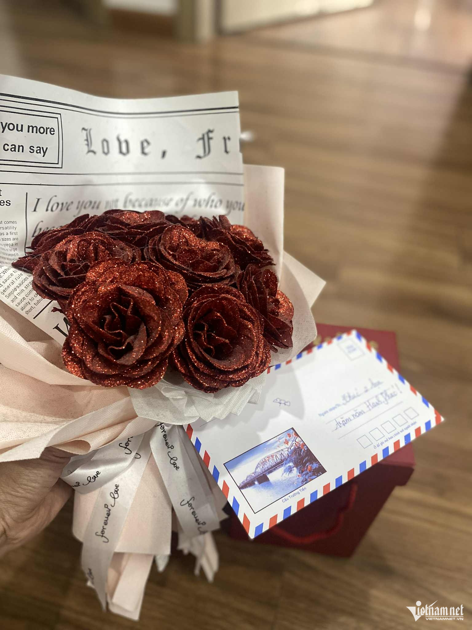 Giờ đến ngày vui của bạn, mình không thể vắng mặt. Mình rất hạnh phúc khi được mừng bạn một món quà nhỏ, gửi gắm lời chúc bình an và hạnh phúc dài lâu. Hy vọng bạn sẽ sớm thực hiện được những dự định của mình - và chuyến du lịch nước ngoài mà chúng ta từng hẹn mấy năm trước, mình mong sẽ cùng bạn thực hiện trong thời gian gần nhất nhé!”.