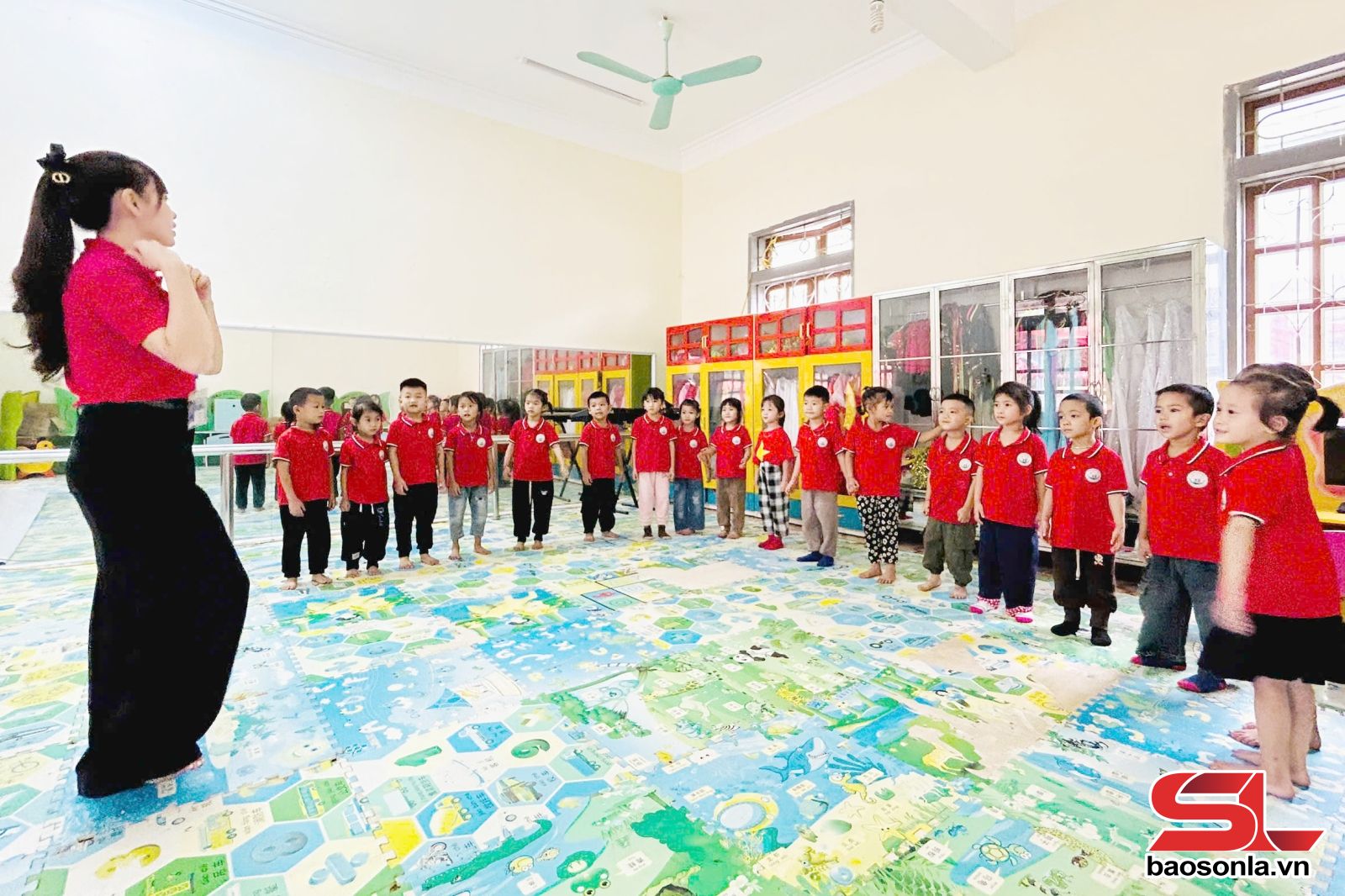 Giờ học múa, hát của cô và trẻ Trường Mầm non Hoa Sữa Muổi Nọi.