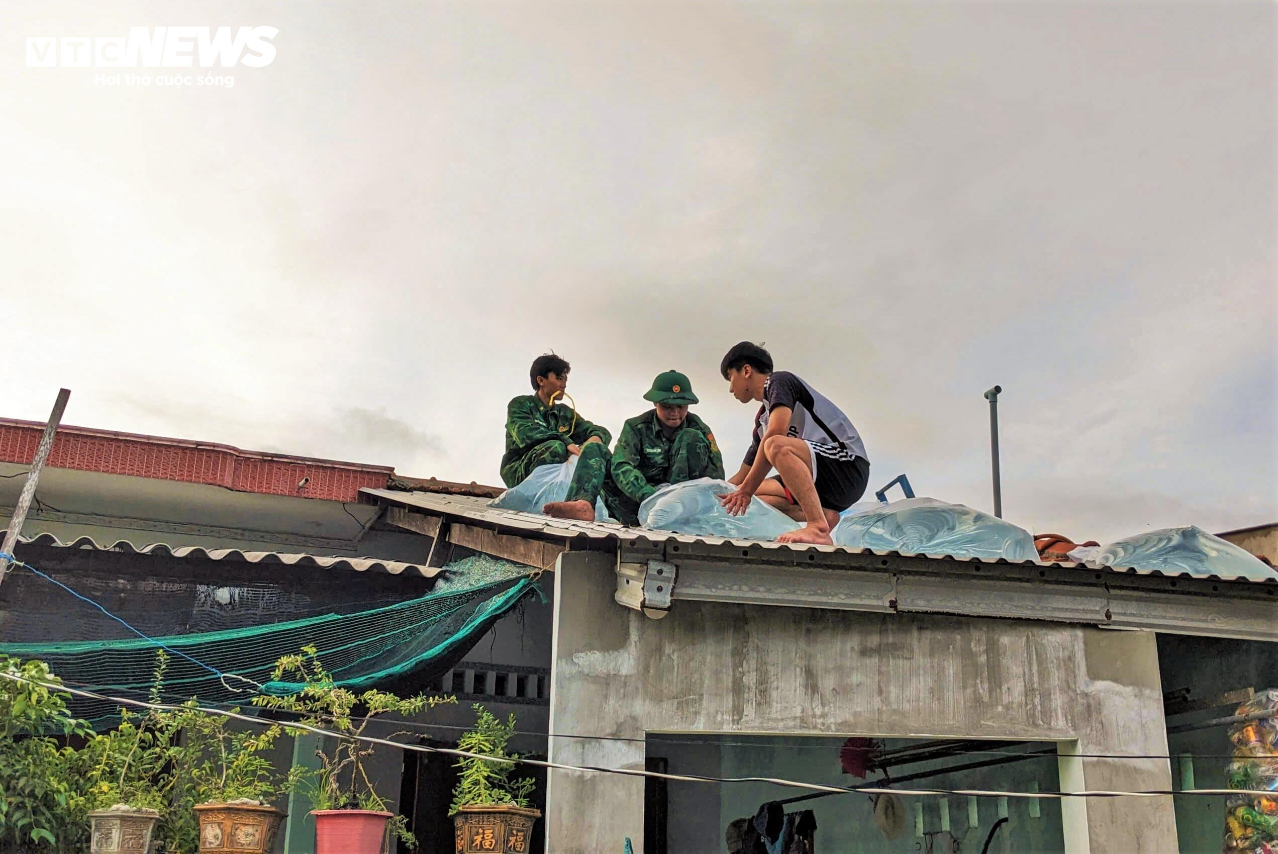 Tại các vùng biển Đắk Lắk, lực lượng quân đội cũng giúp ngư dân làng chài dùng các bao ni lông chằng chéo mái tôn.