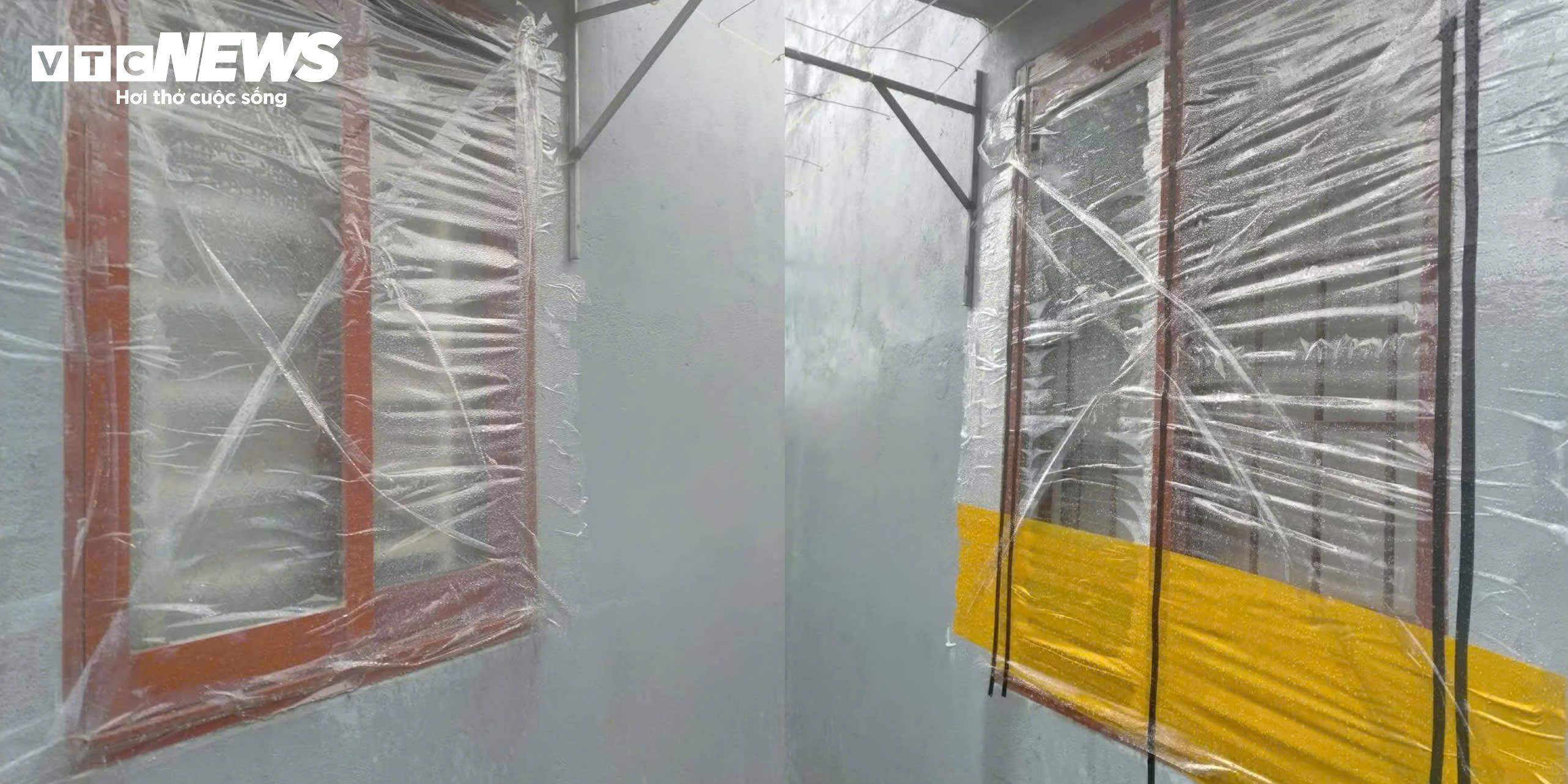 Dùng băng dính, nilon bịt kín bảo vệ cửa kính.