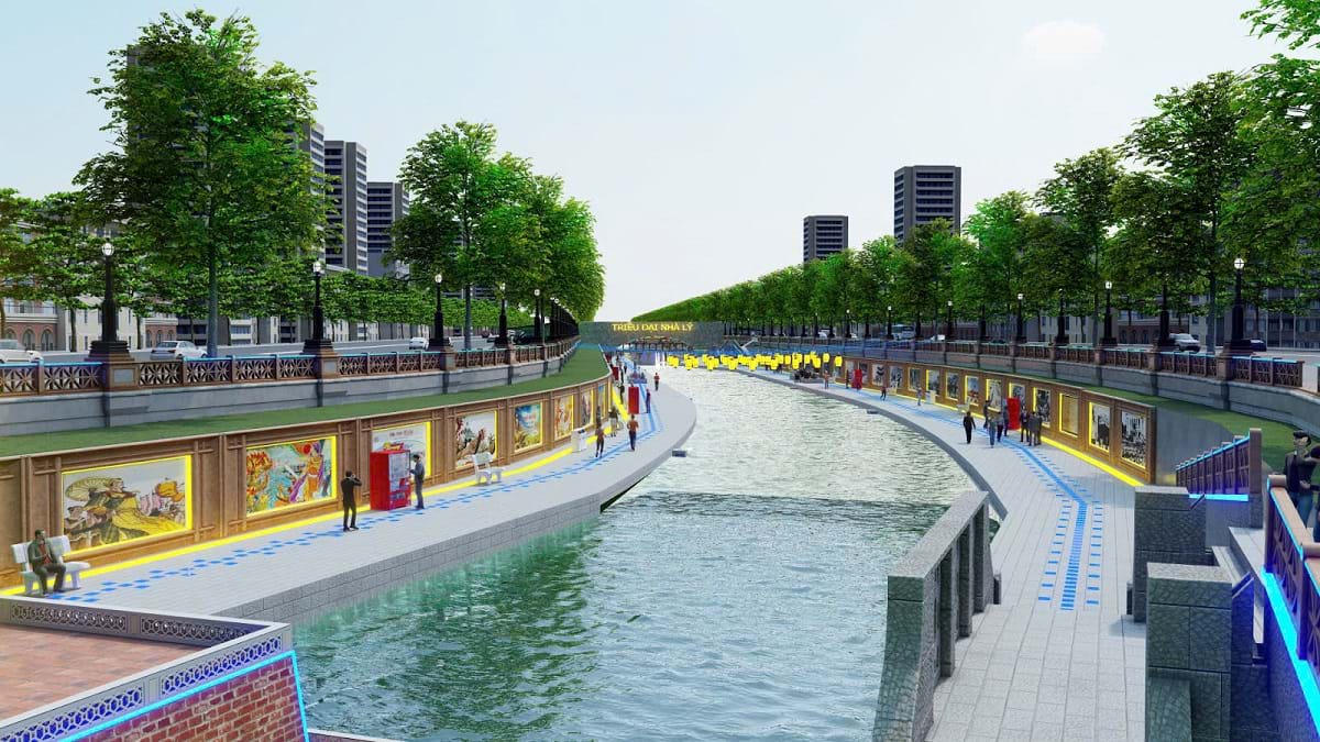 Phối cảnh cải tạo hai bên sông Tô Lịch cần không can thiệp vào mặt nước, ưu tiên khai thác cảnh quan bờ sông để hình thành khung sinh thái – văn hóa – giải trí bền vững cho đô thị. Ảnh: VOV