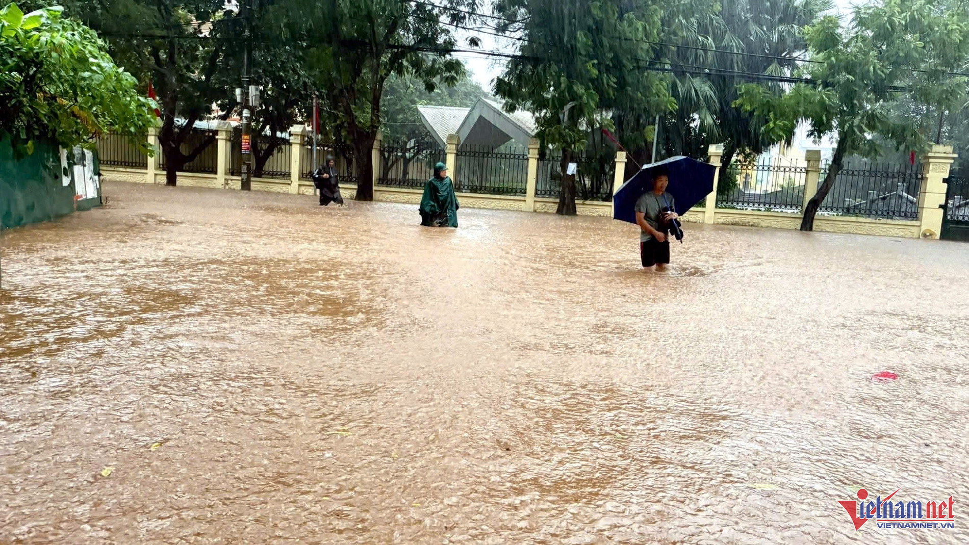 Sáng 7/10, Hà Nội chìm trong mưa lớn kéo dài, kèm theo sấm sét dữ dội. Nhiều trường học phải thông báo cho học sinh nghỉ để đảm bảo an toàn. Dù đến hơn 10h mưa đã ngớt, nhưng hàng loạt tuyến phố vẫn ngập sâu, xe cộ chết máy, giao thông rối loạn.