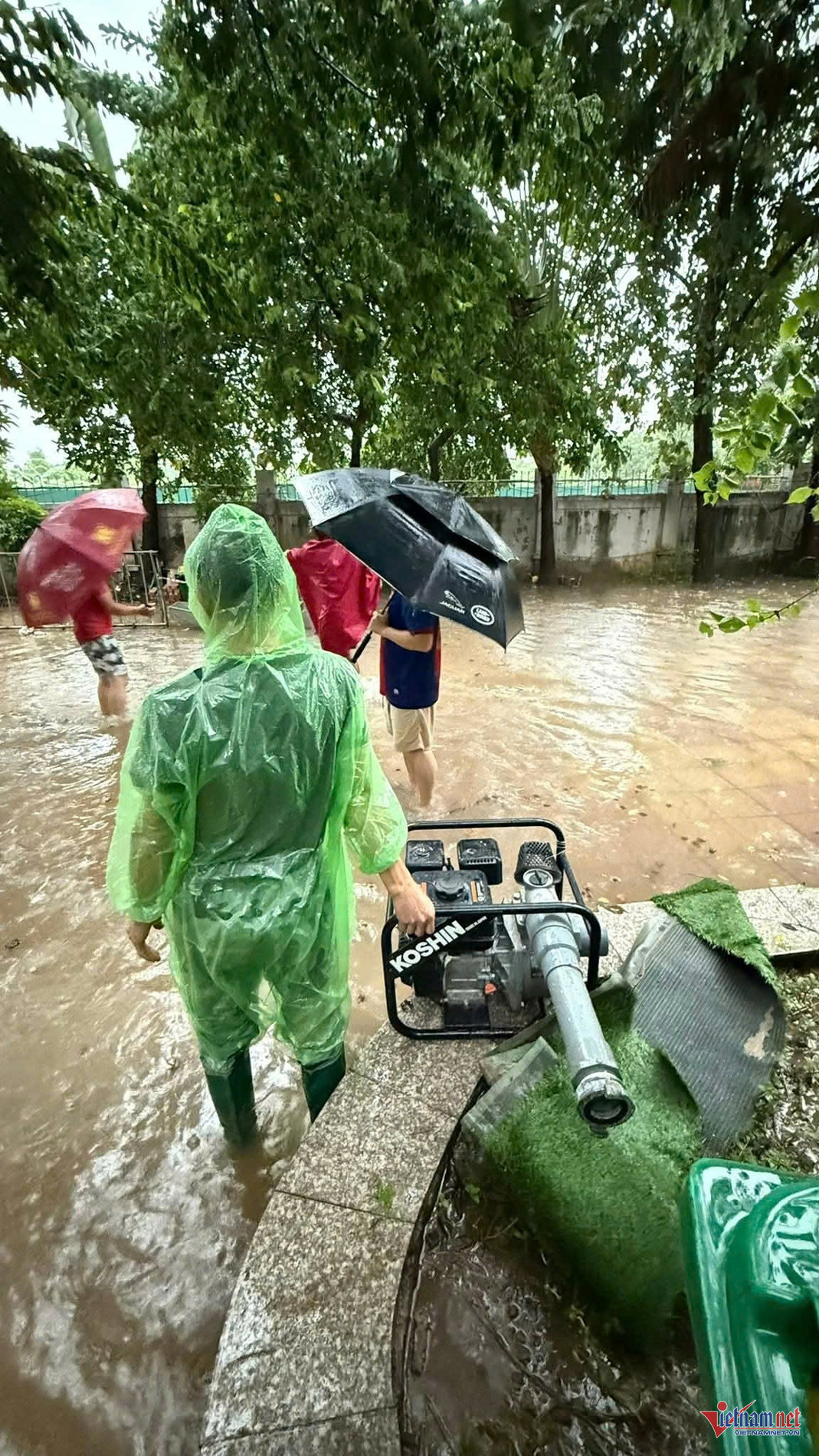 Không chỉ các khu dân cư, mà nhiều trường học trên địa bàn phường Đông Ngạc cũng bị ảnh hưởng nặng nề. Tại Trường Tiểu học Đông Ngạc, nước ngập sâu gần 1m khiến công tác dạy học buộc phải tạm dừng.