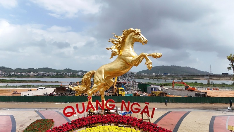 Biểu tượng ngựa dát vàng cao 10 m tại Quảng Ngãi. Ảnh: MXH