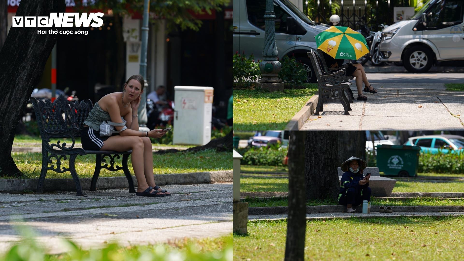 Nhiều người cũng tranh thủ ghé công viên trú nắng giữa thời tiết oi bức.