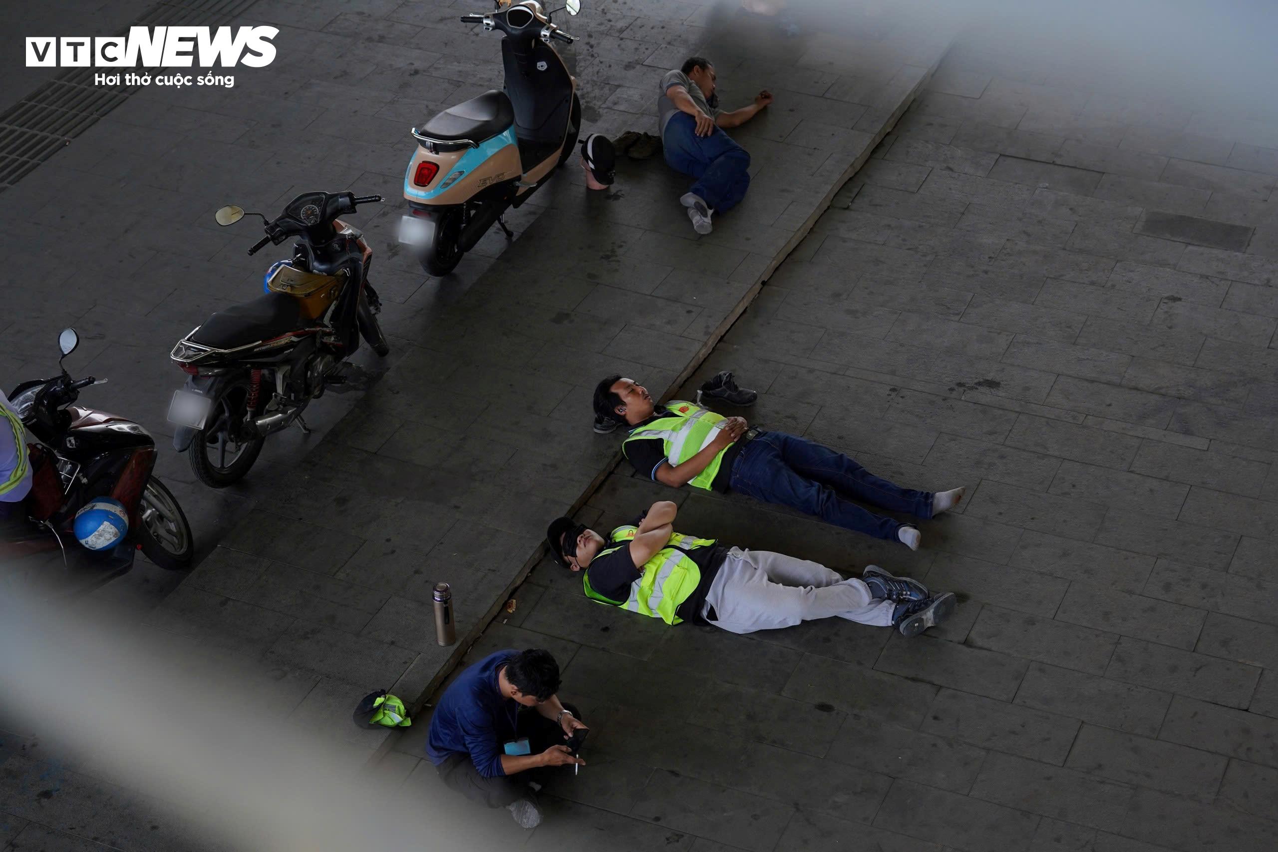 Giữa trưa nắng gắt, người đàn ông mưu sinh bên vỉa hè ngủ gục giữa thời tiết khắc nghiệt.