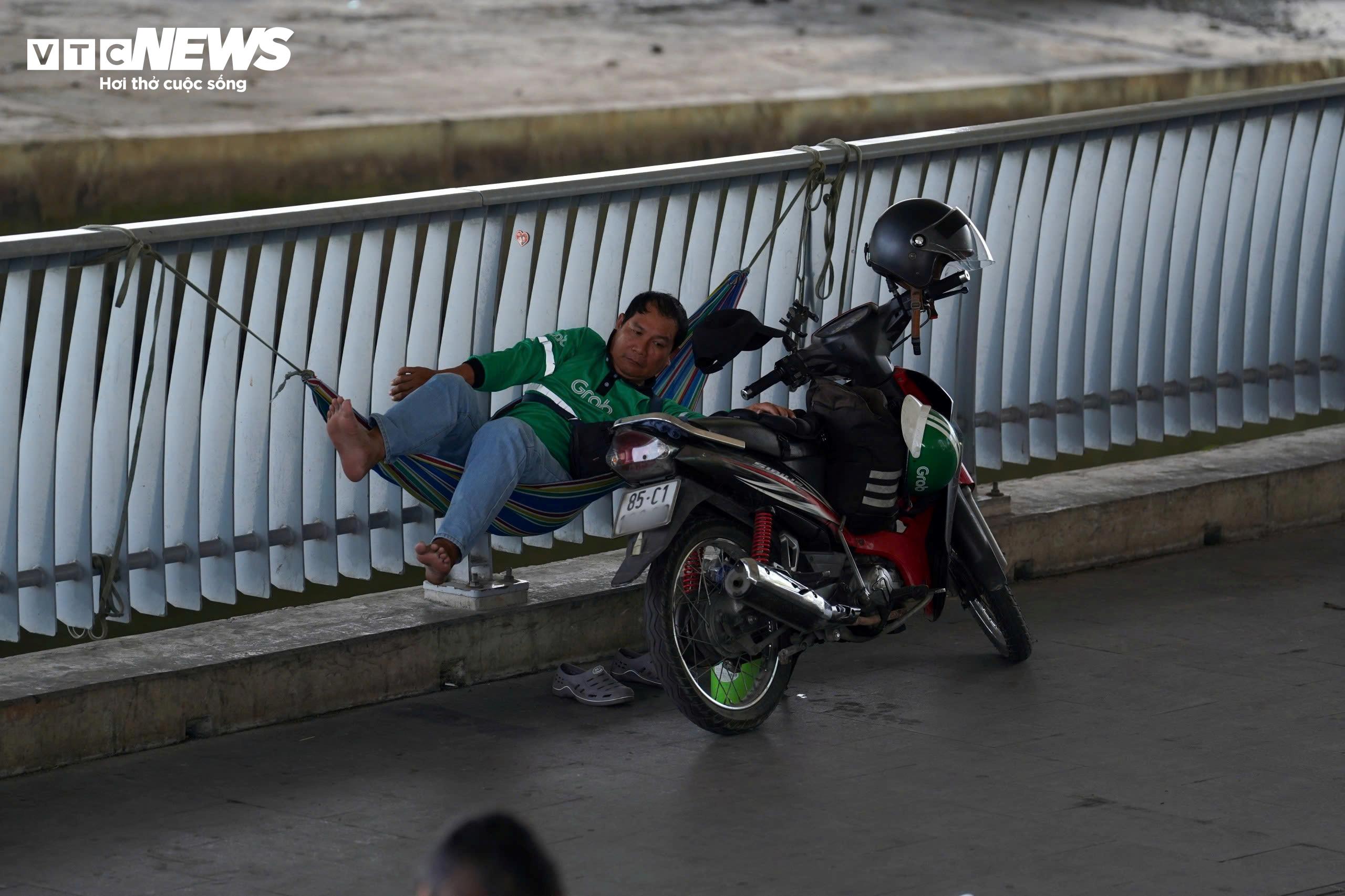 Ghi nhận lúc 12h30, tại dạ cầu Ba Son nhiều người tranh thủ mắc võng dưới chân cầu để nghỉ ngơi, tránh nắng.