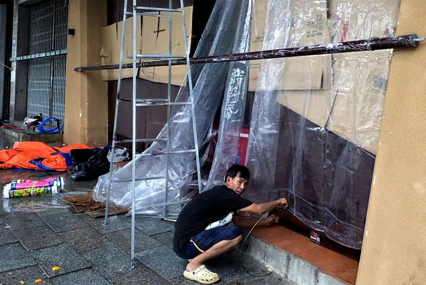 Trưa 6-11, người dân ở phường Quy Nhơn, tỉnh Gia Lai hối hả chằng chống, gia cố nhà cửa trước khi bão số 13 đổ bộ.