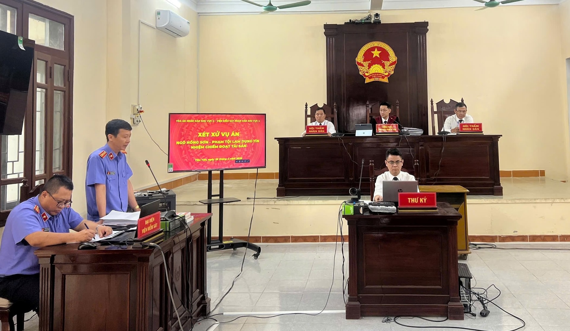 TAND khu vực 4 - Quảng Ninh mở phiên tòa sơ thẩm xét xử bị cáo Ngô Hồng Sơn về tội “Lạm dụng tín nhiệm chiếm đoạt tài sản”. (Ảnh: TV)