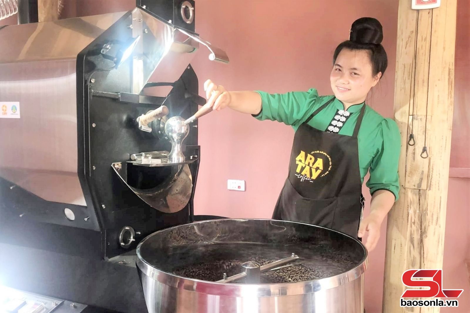 Máy rang cà phê của HTX Ara-Tay Coffee.