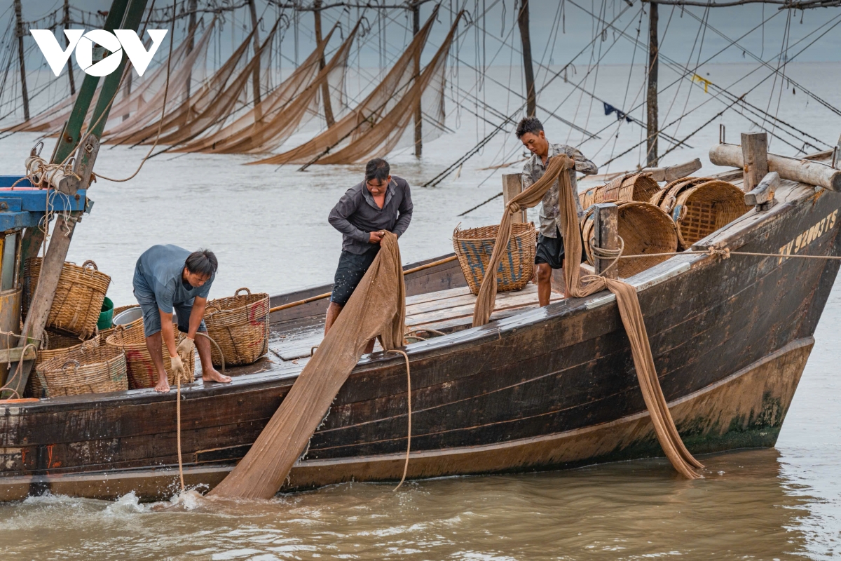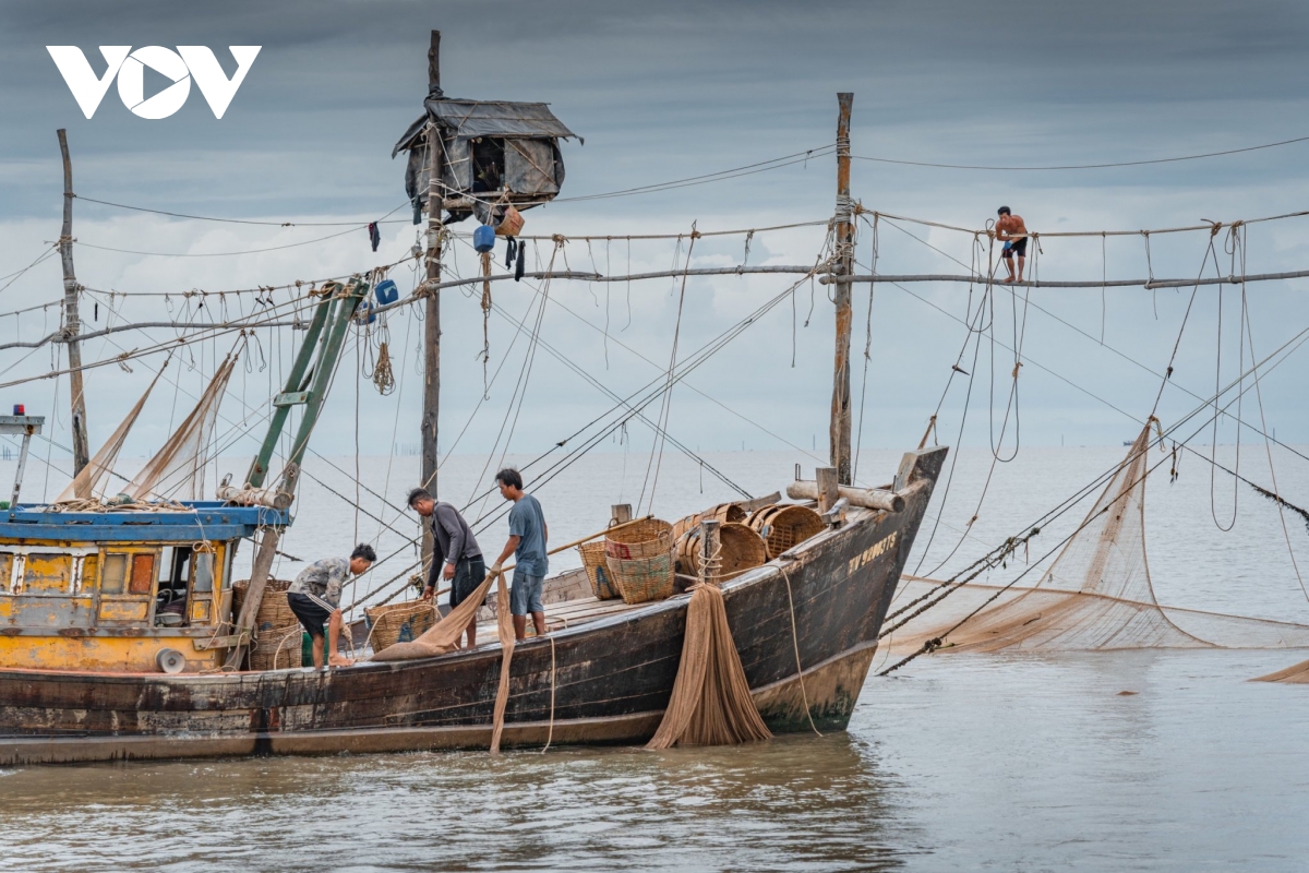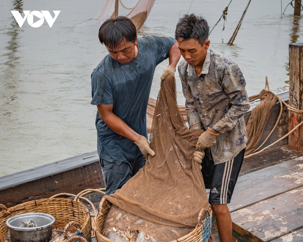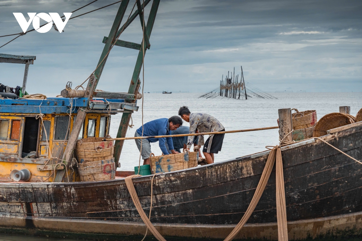Tàu của ngư dân cập vào hàng đáy, nơi những buồng đáy được giăng ra khơi để đón tôm cá, mở ra vòng quay mưu sinh quen thuộc.