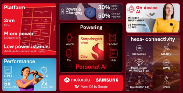 Mặc dù Qualcomm đã tung ra chip riêng biệt cho đồng hồ thông minh, kính thông minh và kính thực tế ảo, sản phẩm vừa trình làng hướng đến việc kết nối các lĩnh vực này. Snapdragon Wear Elite mạnh mẽ hơn với nhiều khả năng kết nối không dây khác nhau, đồng thời cũng hỗ trợ đầu vào và truyền phát video cho AI, thậm chí cả đầu ra video chuẩn 1080p cho trình chiếu.