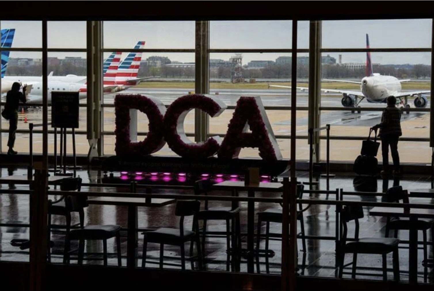 Nhiều chuyến bay bị hủy và hoãn tại Sân bay Ronald Reagan Washington. (Ảnh: Getty)