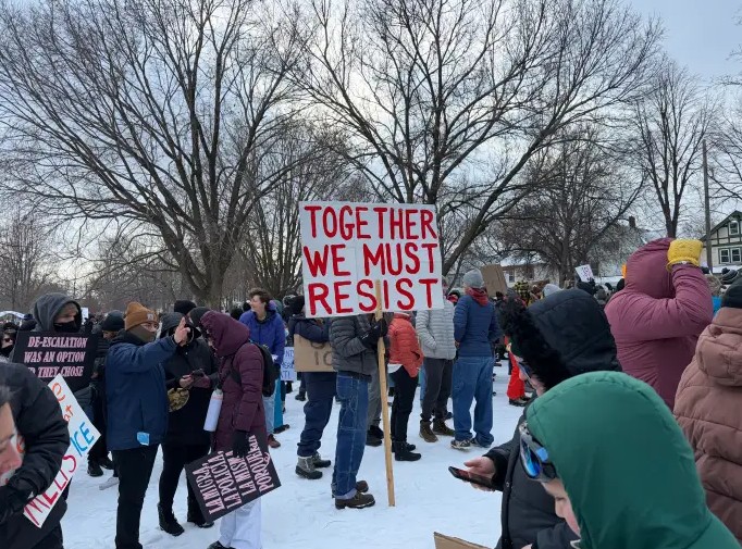Biểu tình phản đối Cơ quan Thực thi di trú và hải quan (ICE) tại thành phố Minneapolis.. Ảnh: BRING ME THE NEWS