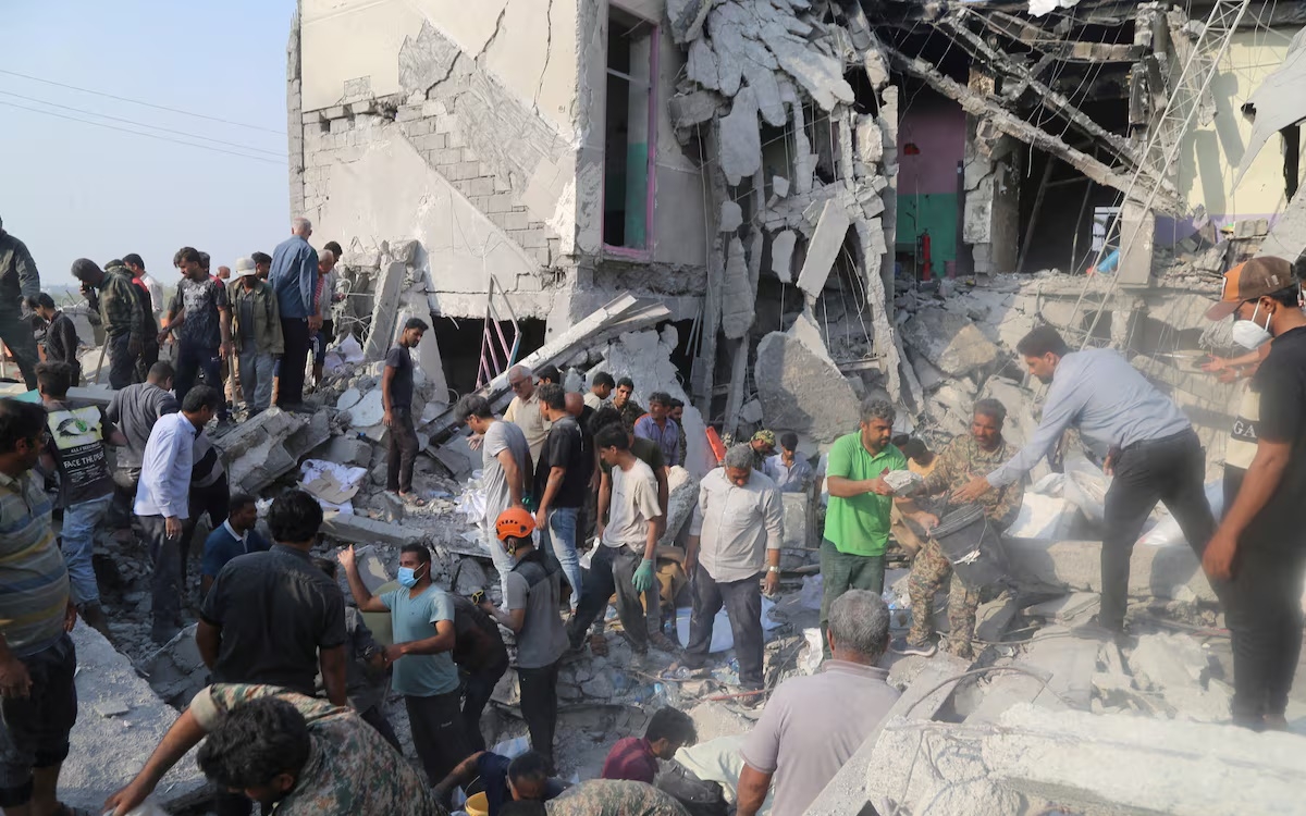Hiện trường ngôi trường ở Minab sau khi Mỹ tập kích Iran. Ảnh: WANA.