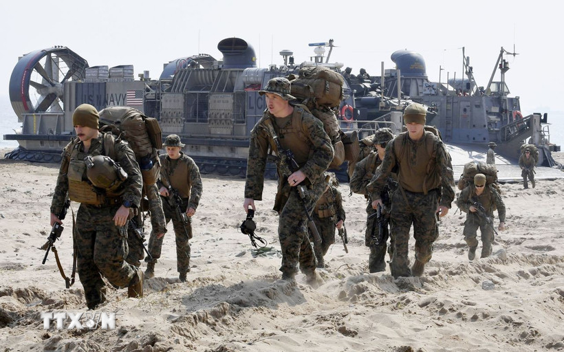 Lực lượng binh sỹ Mỹ tham gia một cuộc tập trận. (Ảnh: Kyodo/TTXVN)