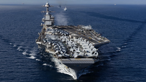 Nhóm tác chiến của tàu sân bay USS Gerald R. Ford gồm bốn khu trục hạm lớp Arleigh Burke là USS Winston S. Churchill, USS Bainbridge, USS Mahan và USS Forrest Sherman cùng ít nhất một tàu ngầm tấn công.