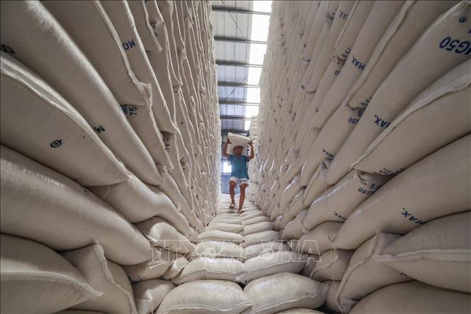 Công nhân bốc vác gạo trong nhà kho của Cơ quan lương thực quốc gia Philippines ở thành phố Valenzuela. Ảnh minh họa: THX/TTXVN