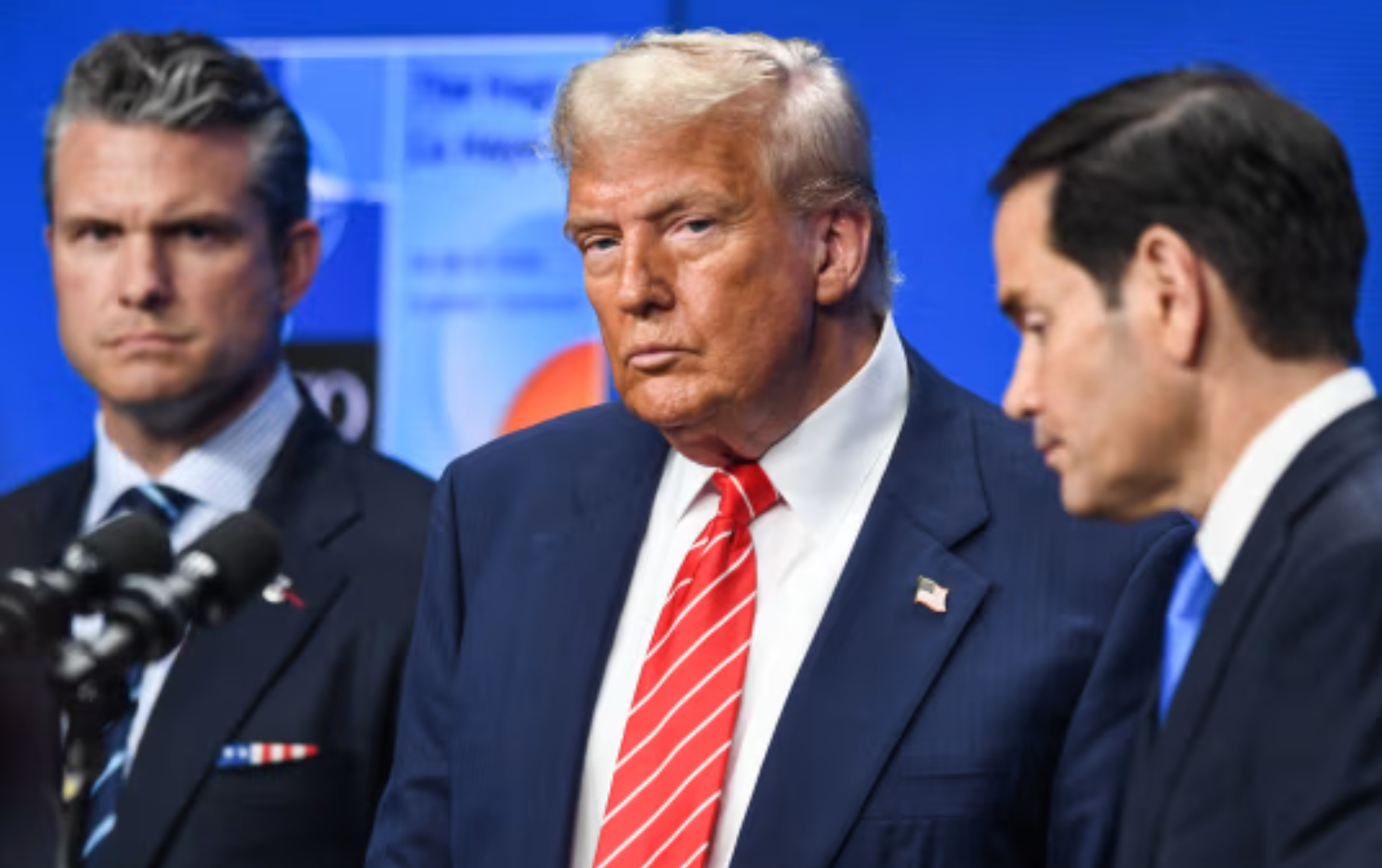 Tổng thống Mỹ Donald Trump tại hội nghị thượng đỉnh NATO ở The Hague vào tháng 6 vừa qua, cùng Bộ trưởng Bộ Chiến tranh Pete Hegseth và Ngoại trưởng Marco Rubio. Ảnh: Zuma Press