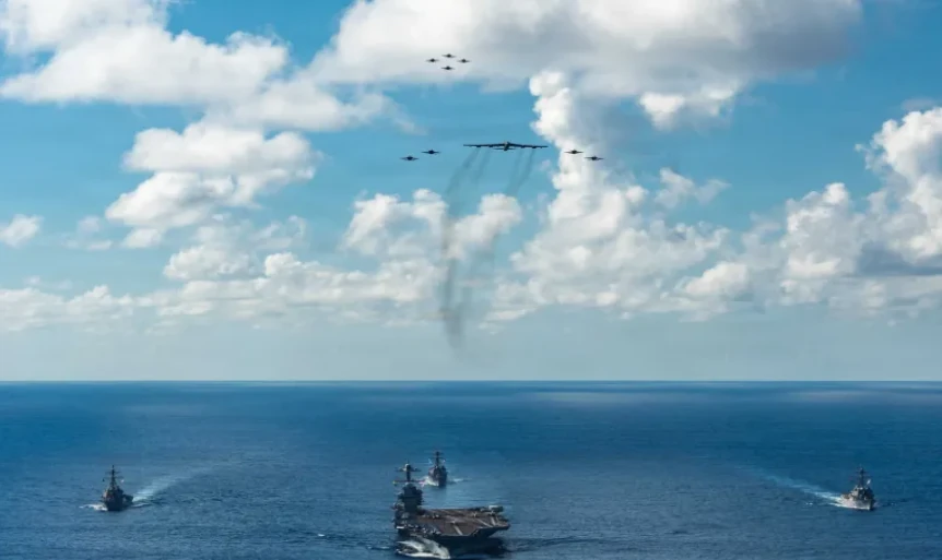 Nhóm tác chiến tàu sân bay Gerald R. Ford của Hải quân Mỹ trên Đại Tây Dương. Ảnh: Aljazeera.