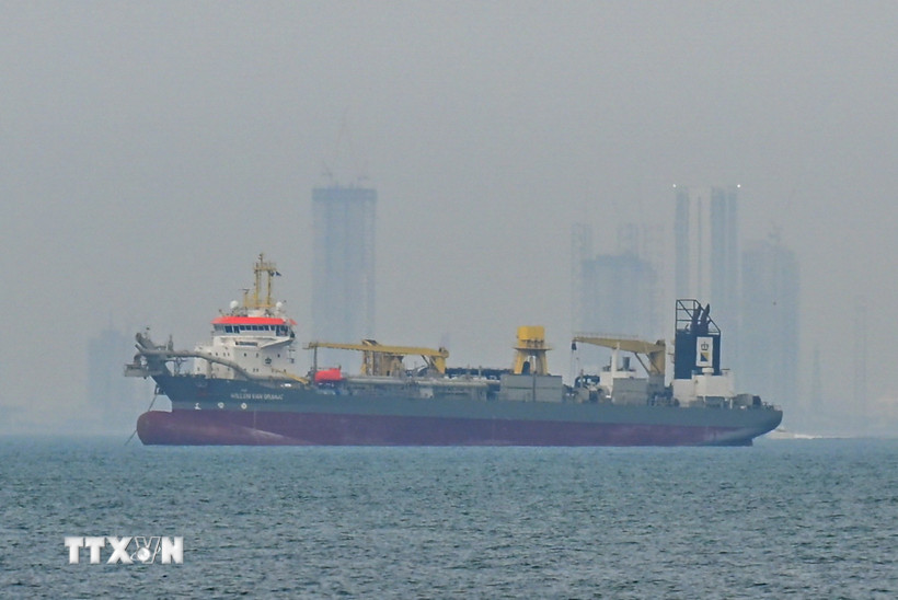 Tàu thương mại neo ngoài khơi Dubai, Các tiểu vương quốc Arab thống nhất, khi hoạt động hàng hải bị gián đoạn tại eo biển Hormuz, ngày 2/3/2026. (Ảnh: Anadolu Agency/TTXVN)