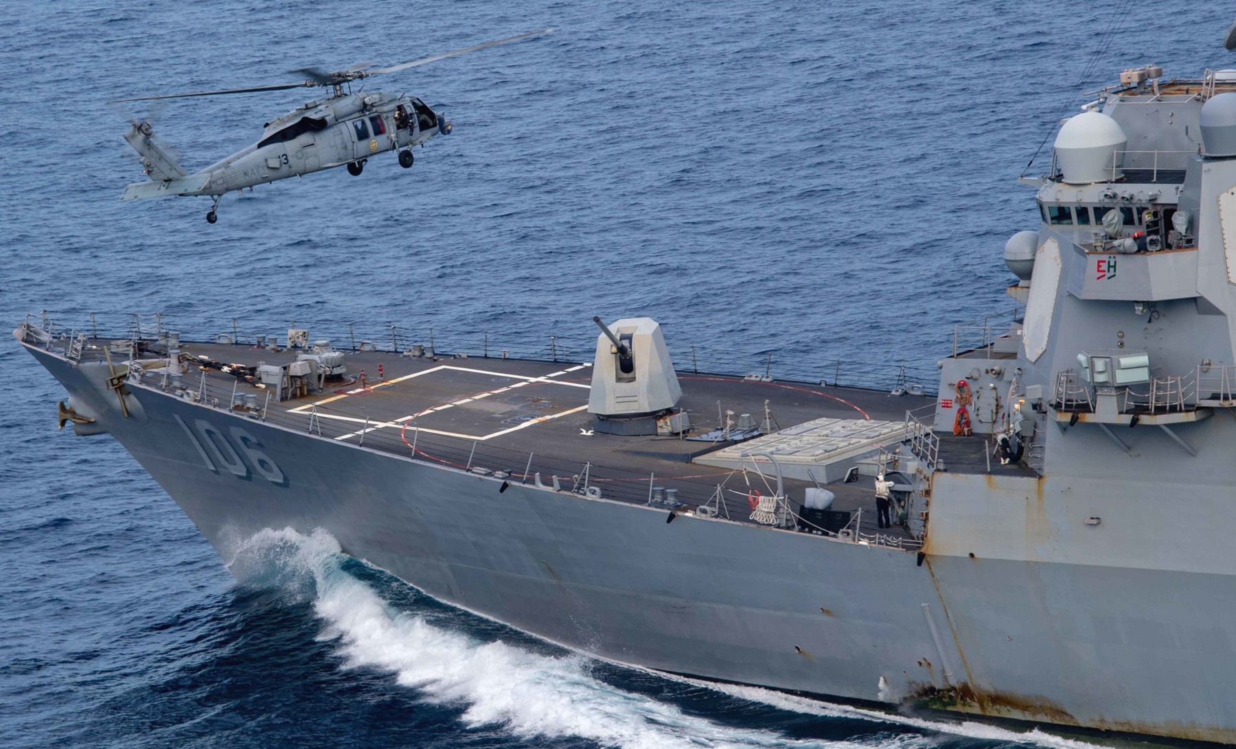 Chiến hạm được trang bị 2 hệ thống phòng thủ tầm gần Phalanx và 2 trực thăng MH-60R.