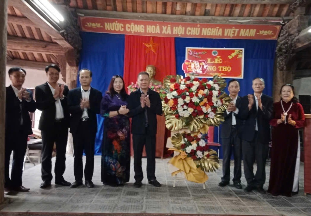 Lãnh đạo xã Mỹ Đức chúc thọ người cao tuổi tại thôn Trinh Tiết sáng Mùng 2 Tết Bính Ngọ 2026. Ảnh: Biên Phạm